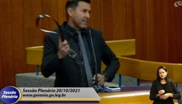 Durante uma sessão plenária na Câmara Municipal de Goiânia, na última quarta-feira, 20/10, o vereador Sargento Novandir (Republicanos) ameaçou bater com um cinto em Geverson Abel (Avante). O vereador chegou a tirar o cinto da cintura e bater com ele em um mesa.