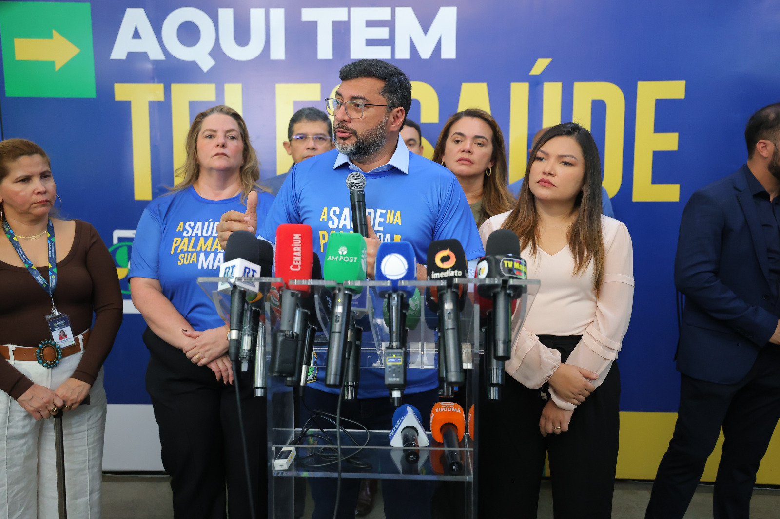 O governador apresentou o balanço acompanhado dos deputados Alessandra Campelo, João Luiz e Joana D'Arc; da presidente do Conselho Estadual de Saúde (CES-AM), Ana Cláudia Martins; o coordenador do Núcleo de Defesa da Saúde da Defensoria Pública do Estado (Nudesa/DPE), Arlindo Gonçalves; a secretária de Estado de Saúde, Nayara Maksoud; e o procurador-geral do Amazonas, Giordano Bruno.