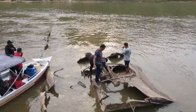 A seca severa que atinge o Rio Madeira neste ano trouxe à tona os restos de um navio do Século XIX na passagem do Pedral do Marmelo, em Manicoré, Amazonas.
