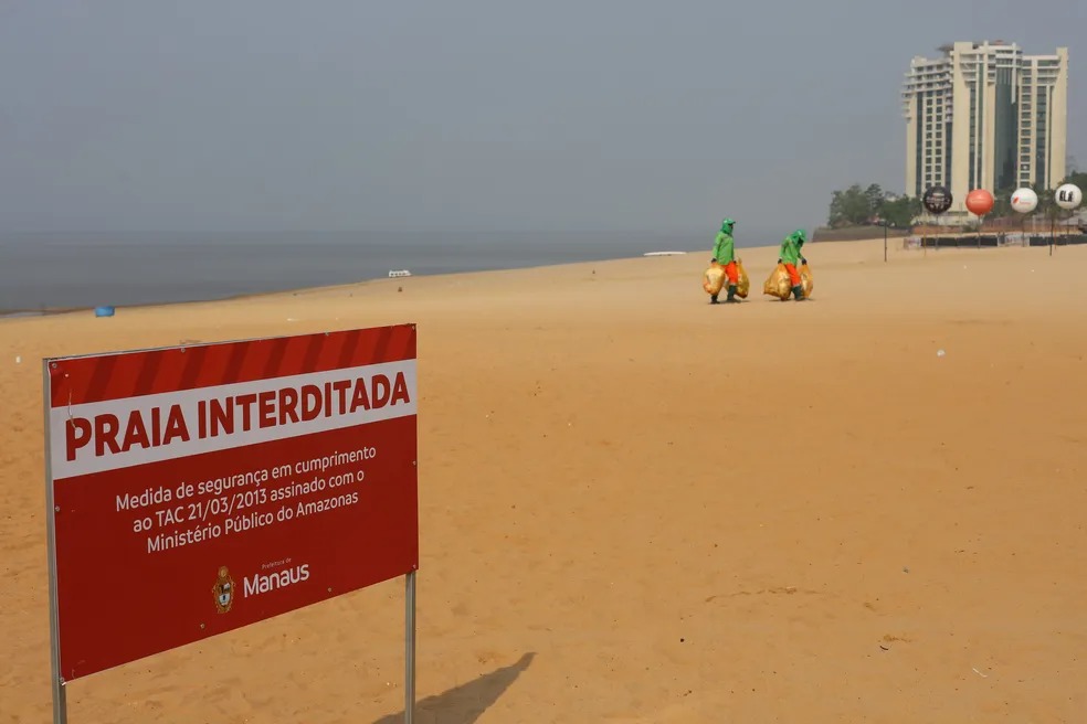 A capital Manaus é uma delas. O Rio Negro, rio que banha a cidade, está medindo nesta quarta-feira, 15,02 metros e a seca, na cidade, já é a 10ª maior de sua história. A previsão, inclusive, é que as águas continuem descendo até a segunda quinzena de outubro.A seca severa obrigou a interdição da praia da Ponta Negra, principal balneário de Manaus. O banho está proibido no local desde a segunda-feira, 02/10.