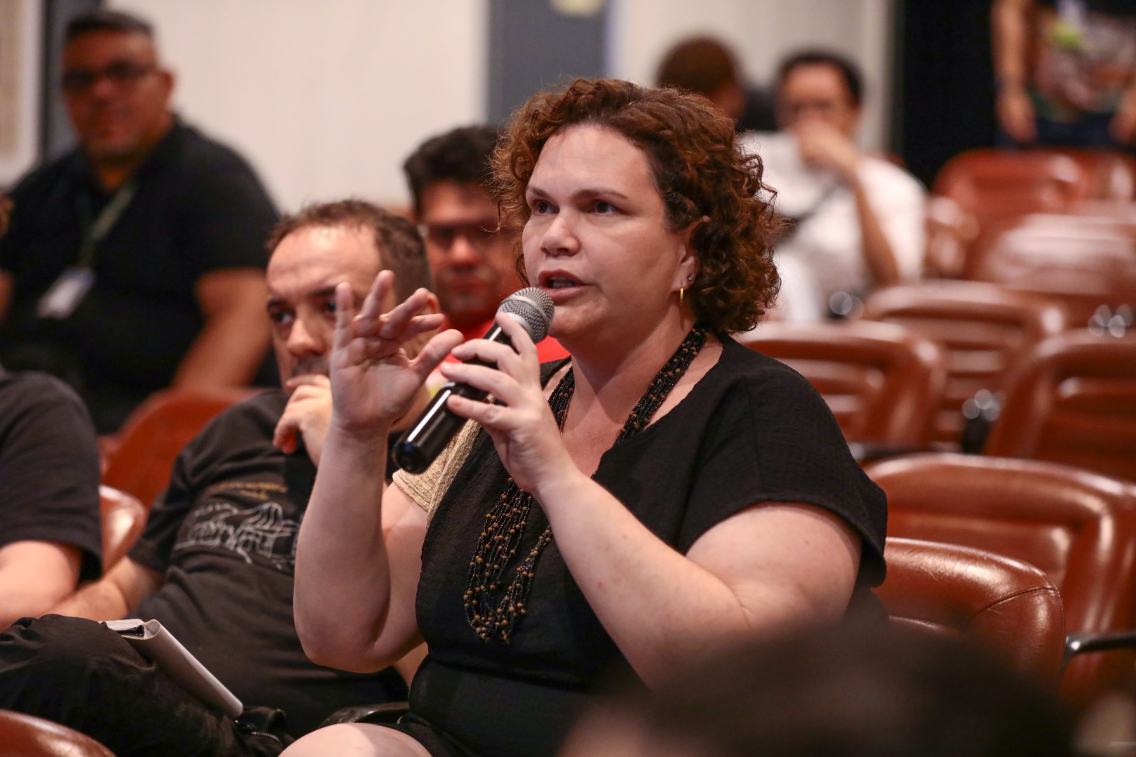 No último dia do evento, a assessora compartilhou os resultados obtidos. Segundo ela, na sexta-feira à noite, 14/06, foram realizadas conversas com duas classes artísticas e culturais do Estado. “A primeira reunião foi com a galera do audiovisual e conseguiu-se definir alguns critérios de editais e estabelecer uma divisão a respeito de valores e possibilidades dentro do edital do audiovisual”, contou.