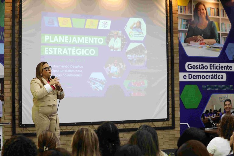 A Secretaria de Estado de Educação e Desporto Escolar lançou, na terça-feira, 25/03, o Planejamento Estratégico da instituição para o triênio 2025-2027. Norteado pelo Plano Nacional de Educação (PNE), Plano Estadual de Educação (PEE-AM), Plano Plurianual Governamental (PPA) e pelos Objetivos de Desenvolvimento Sustentável (ODS), o Planejamento Estratégico contém a missão, visão e valores da secretaria, além de 12 metas prioritárias de atuação.