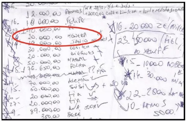 Bilhetes apreendidos pelos investigadores contêm várias anotações com o nome Monnerat. No total, em 12 vezes os manuscritos registravam os valores “oriundos de propina” indo para os seus bolsos, somando cerca de R$ 300 mil, diz o MPF.
