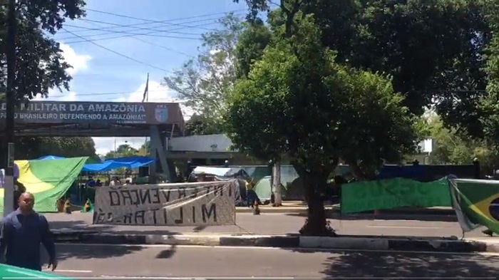 A Polícia Militar do Amazonas já está na frente do Comando Militar da Amazônia (CMA) localizado na Estrada da Ponta Negra, na manhã desta segunda-feira, 9, para iniciar a retirada dos manifestantes bolsonaristas acampados no local.