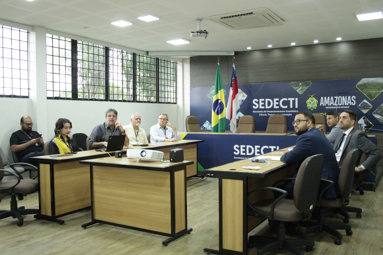 A Secretaria de Estado de Desenvolvimento Econômico, Ciência, Tecnologia e Inovação (Sedecti) recebeu, nesta terça-feira, 14/10, os representantes da embaixada da Argentina no Brasil, Joaquin Coniglio e Patrício Violini. Durante o encontro, foram apresentados o histórico da Zona Franca de Manaus (ZFM), além de seus dados econômicos, os incentivos fiscais e a questão da reforma tributária.