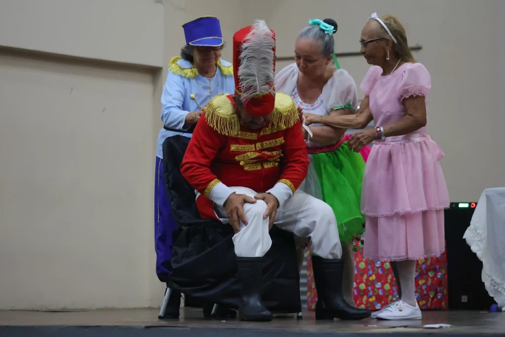 “O Quebra-Nozes: Uma Releitura” apresentou uma proposta inovadora que une adaptação teatral a elementos cênicos e coreográficos de diferentes linguagens da dança. Pela primeira vez na história do Projeto Idoso em Movimento, o espetáculo contou com uma coreografia de balé clássico, ampliando o acesso dos participantes a novas experiências artísticas.Atendidos pelo Programa EnvelheSer 60+ e pelo Projeto Idoso em Movimento, ambos coordenados pela Seadpi, os participantes viveram uma apresentação marcada por encanto, afeto e memória afetiva, elementos que tornam o período natalino ainda mais especial.
