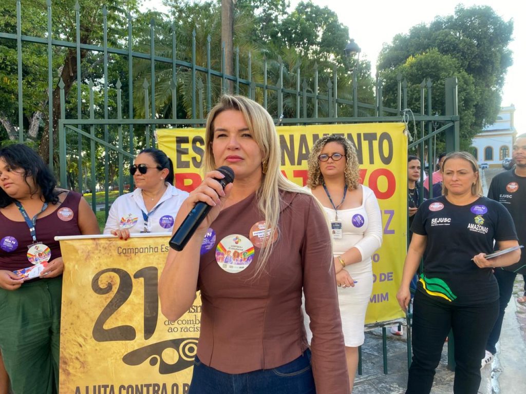Em homenagem ao Dia da Declaração Universal dos Direitos Humanos, a Secretaria de Estado de Justiça, Direitos Humanos e Cidadania (Sejusc) realizou, na quarta-feira, 10/12, uma caminhada no Centro de Manaus, com objetivo orientar a população sobre os serviços e atuação do órgão na proteção e garantia de direitos humanos.
