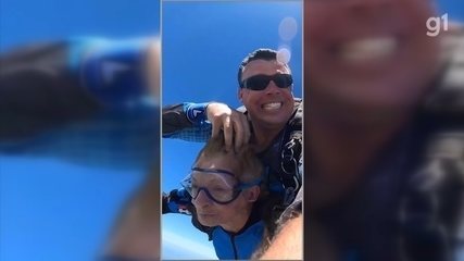 Idosa realiza sonho de pular de paraquedas