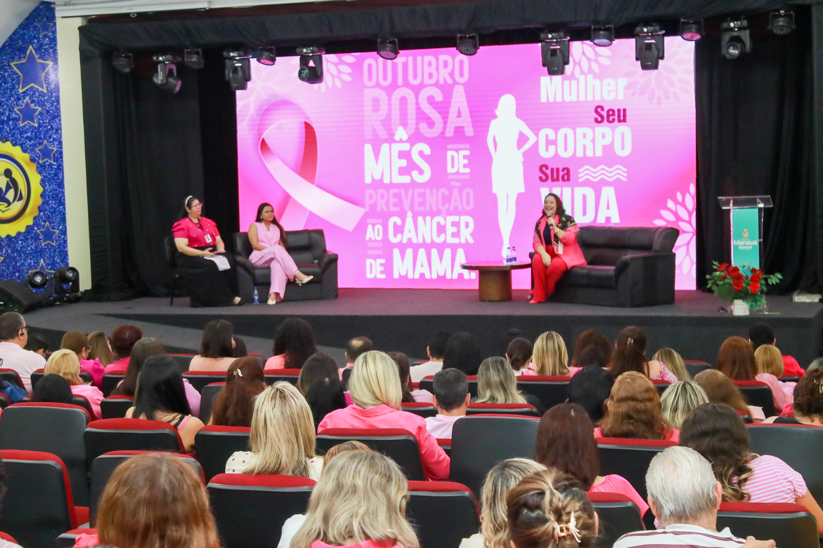 Com o slogan “Conhecimento que protege. Cuidado que faz viver”, a Prefeitura de Manaus, por meio da Secretaria Municipal de Educação (Semed), realizou uma roda de conversa voltada aos servidores da educação, alusiva à campanha do “Outubro Rosa”. O evento aconteceu, nesta sexta-feira, 10/10, no auditório da secretaria, na avenida Maceió, Parque 10 de Novembro, Zona Centro-Sul.
