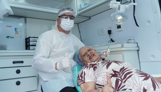 Unidade odontológica móvel da prefeitura atende idosos residentes da Fundação Dr. Thomas