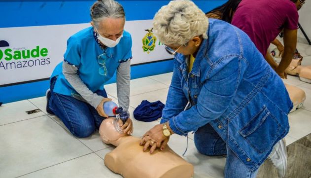 A Secretaria de Estado de Saúde (SES-AM) promoveu, quarta e quinta-feira, 14 e 15/01, cursos de Suporte Básico de Vida (SBV) e de Acolhimento e Classificação de Risco Biopsicossocial, para profissionais que atuam no Centro de Saúde Mental do Amazonas (Cesmam). O objetivo é fortalecer as ações de acolhimento aos pacientes, além de ampliar a segurança do atendimento, contribuindo para um cuidado mais ágil e humanizado.