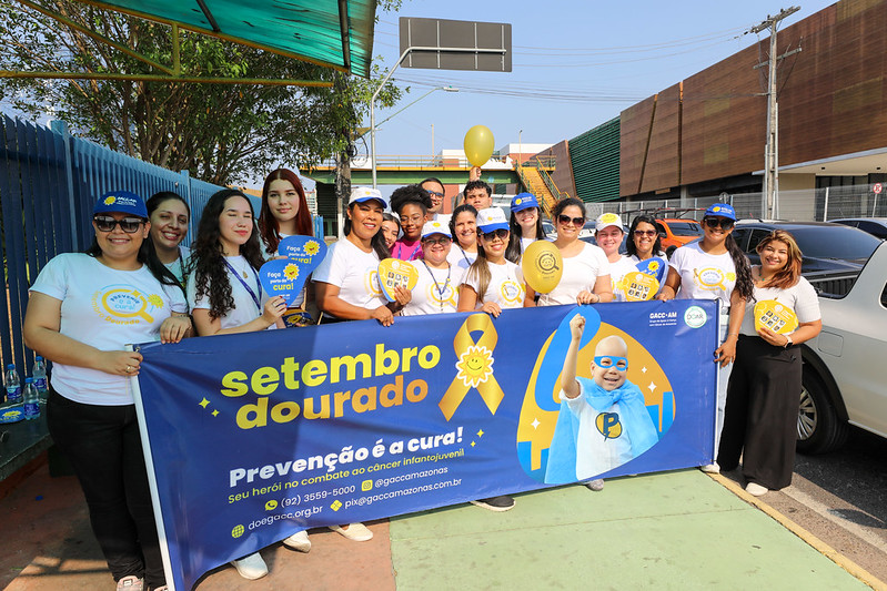 A Fundação Hospitalar de Hematologia e Hemoterapia do Amazonas (Hemoam) juntamente com o Grupo de Apoio à Criança com Câncer do Amazonas (GACC/AM) e o Grupo Raio de Sol realizaram nesta segunda-feira, 09/09, uma blitz educativa para chamar atenção acerca do Setembro Dourado, mês de conscientização sobre o câncer infantojuvenil.