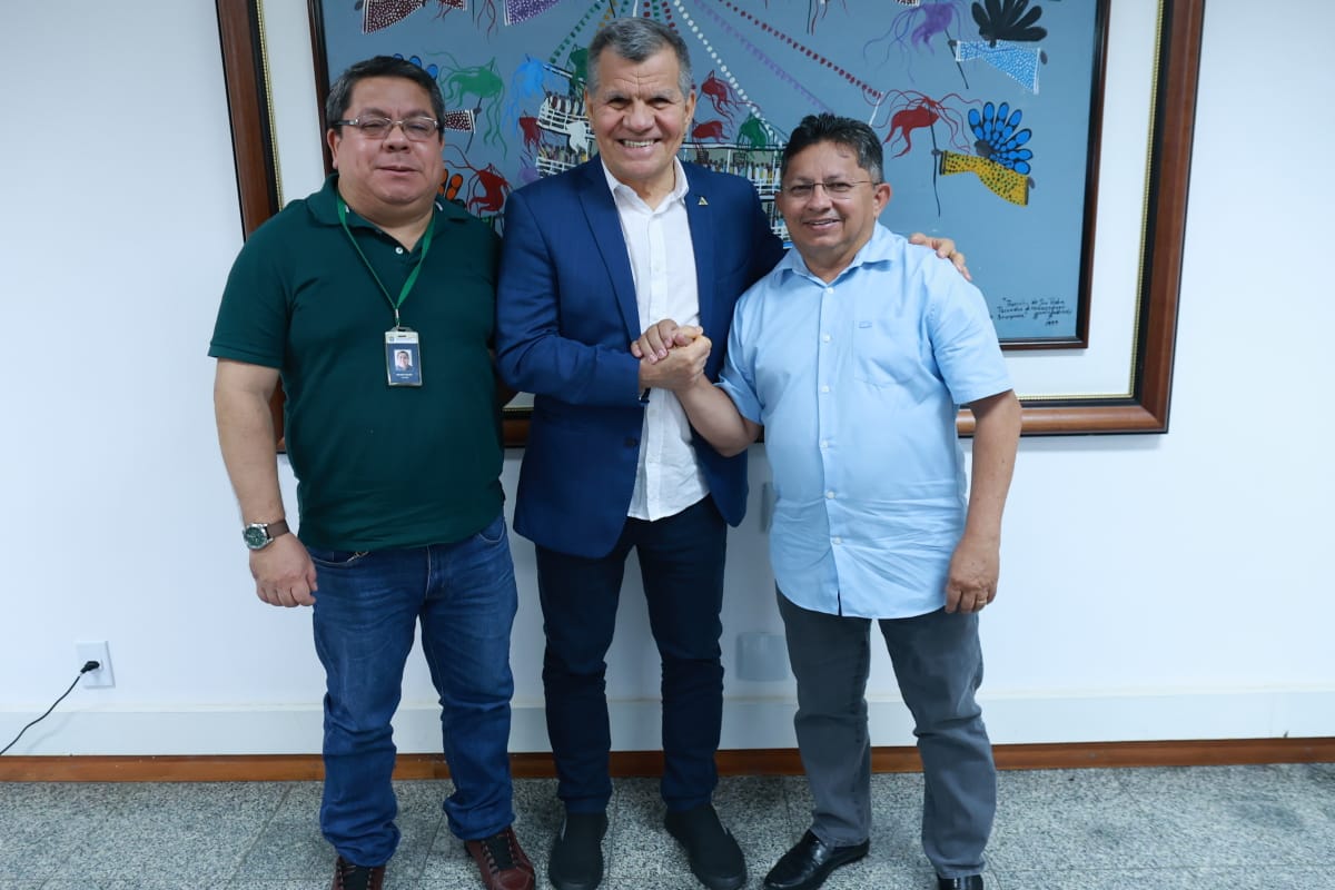 Na última sexta-feira, 16/05, o deputado estadual Sinésio Campos (PT-AM) se reuniu com o superintendente da Suframa, Bosco Saraiva, e com o superintendente da Secretaria do Patrimônio da União (SPU) no Amazonas, Mauro Leno, para tratar da regularização fundiária das áreas pertencentes à Suframa atualmente ocupadas por milhares de famílias em Manaus.
