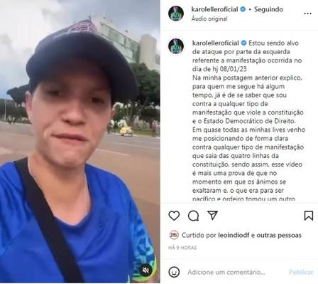 Próxima do filho 04 do ex-presidente, Jair Renan, a servidora da EBC e youtuber bolsonarista, Karol Eller, também estava na Praça dos Três Poderes quando ocorreram os atos de terrorismo. Eller, que tem um cargo de confiança desde 2019, fez transmissões ao vivo, enquanto participava das manifestações.