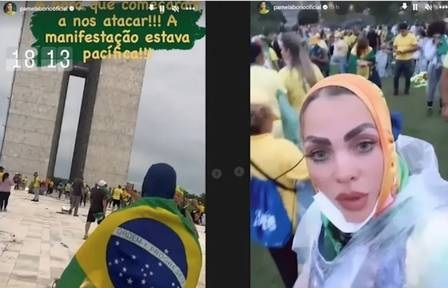 A ex-primeira-dama da Paraíba Pâmela Bório (PSC) compartilhou vídeos em suas redes sociais ao lado do filho, menor de idade, e outros bolsonalistas invadindo o Congresso Nacional. Ela é ex-mulher do ex-governador Ricardo Coutinho (PT).