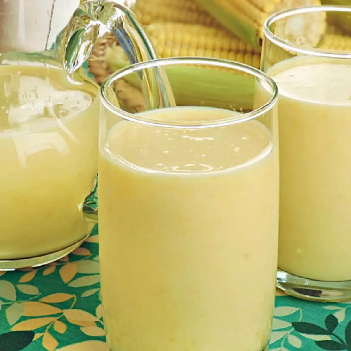 Como o milho verde é o protagonista disparado do mês de junho, nada mais justo do que usá-lo em todo tipo de receita, incluindo um suco bem cremoso e docinho. A bebida é feita com os grãos retirados diretamente da espiga, leite, água, açúcar e leite condensado para adicionar ainda mais cremosidade.