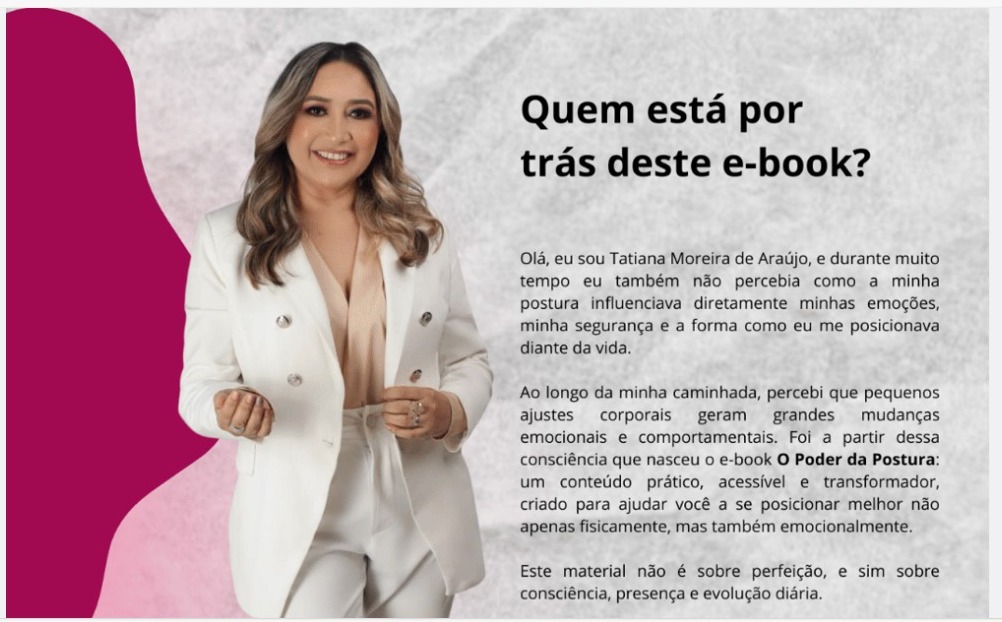 O lançamento do ebook “O Poder da Postura”, comercializado pela plataforma Kiwify e desenvolvido por Tatiana Araujo Moreira, surge dentro de um fenômeno maior: o da reconstrução da presença feminina como expressão de identidade, dignidade e autoridade. Não se trata apenas de coluna ereta. Trata-se de reconstrução interna.