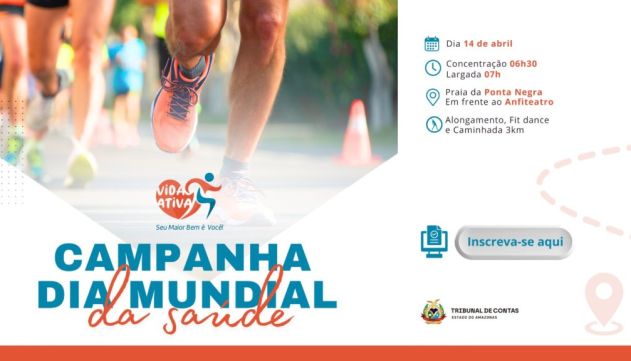 Com o objetivo de promover a saúde e o bem-estar dos servidores ativos e inativos, bem como da comunidade em geral, o Tribunal de Contas do Amazonas (TCE-AM), via Diretoria de Saúde (Disau), realizará, no próximo domingo, 14, uma caminhada especial em comemoração ao Dia Mundial da Saúde. O evento, que ocorrerá na avenida Coronel Teixeira, das 8h às 12h, terá como cenário a praia da Ponta Negra.