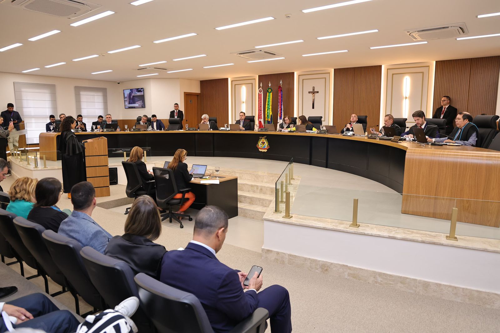 A sessão foi conduzida pela presidente da Corte de Contas, conselheira Yara Amazônia Lins. Participaram Júlio Pinheiro, Mario de Mello, Josué Cláudio e Fabian Barbosa, e os auditores Mário Filho, Alípio Reis Firmo Filho e Luiz Henrique Mendes. O procurador-geral João Barroso representou o Ministério Público de Contas (MPC).
