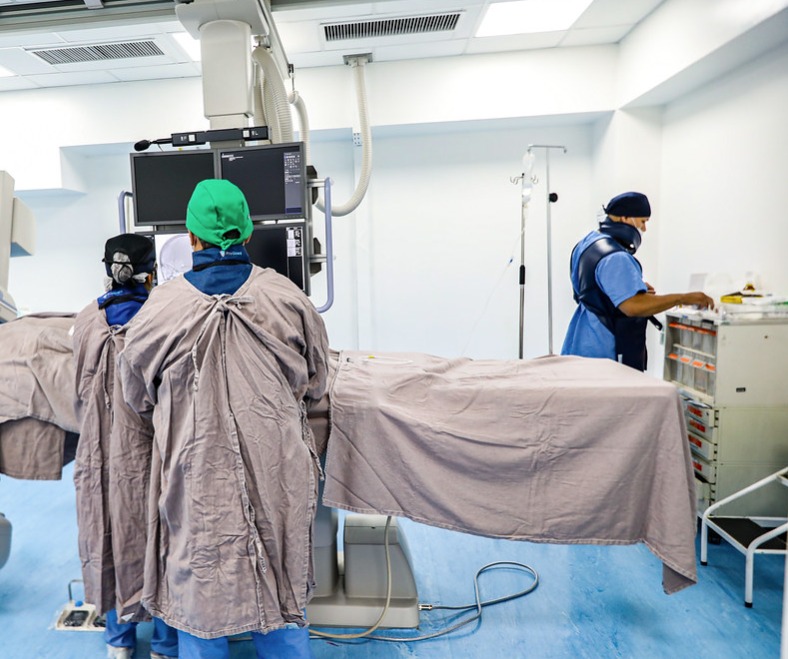 Os dois equipamentos de hemodinâmica em atividade no hospital realizavam uma média de 4,5 mil exames por ano e, com o terceiro aparelho, deve aumentar em 26% a quantidade de atendimentos. Com os dois primeiros aparelhos de hemodinâmica e dois tomógrafos em operação, o hospital conseguiu, em 2024, zerar a fila ambulatorial de angioplastia e cateterismo, com a realização de 2.822 procedimentos do tipo.