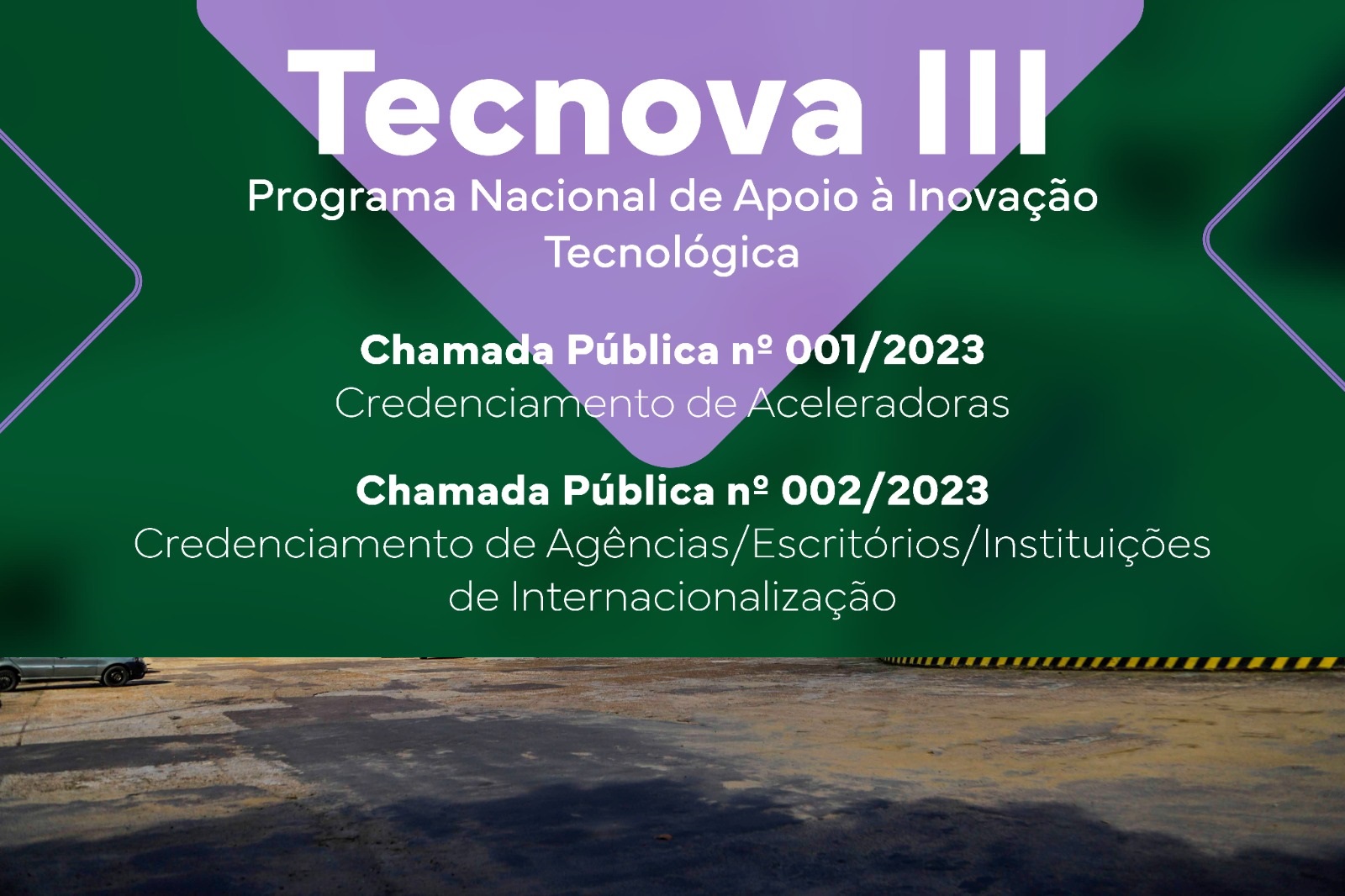 A Chamada Pública Nº 001/2023 visa credenciar aceleradoras de negócios que ofereçam serviços às empresas apoiadas no Programa Tecnova III, com o objetivo de conectar negócios inovadores aos programas de aceleração, visando potencializar os modelos de negócios, explorar novos mercados e acessar capital de risco para ampliar os empreendimentos.