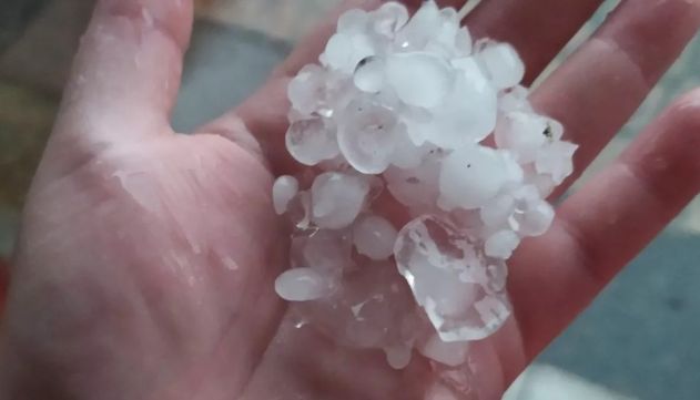 Além dos ventos fortes e da chuva intensa, pequenas pedras de gelo começaram a cair do céu, danificando telhados e impressionando a população.