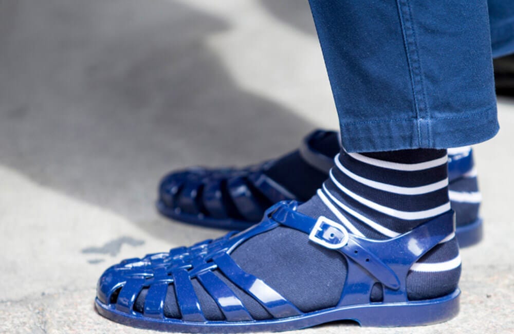 Mas se está quente o suficiente para usar sandálias, por que usar meias? E se está frio demais para usar sandálias sem meias, por que não usar um tênis ou outro sapato? De verdade, não existe nenhuma justificativa para essa combinação. Nenhuma. Não importa a sua idade ou estágio atual da vida ou o clima ou qualquer outra razão que você tenha.