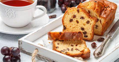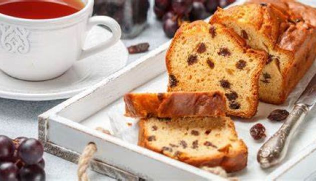 Deixe esfriar, desenforme e sirva em seguida a sua torta de banana e uva-passa.