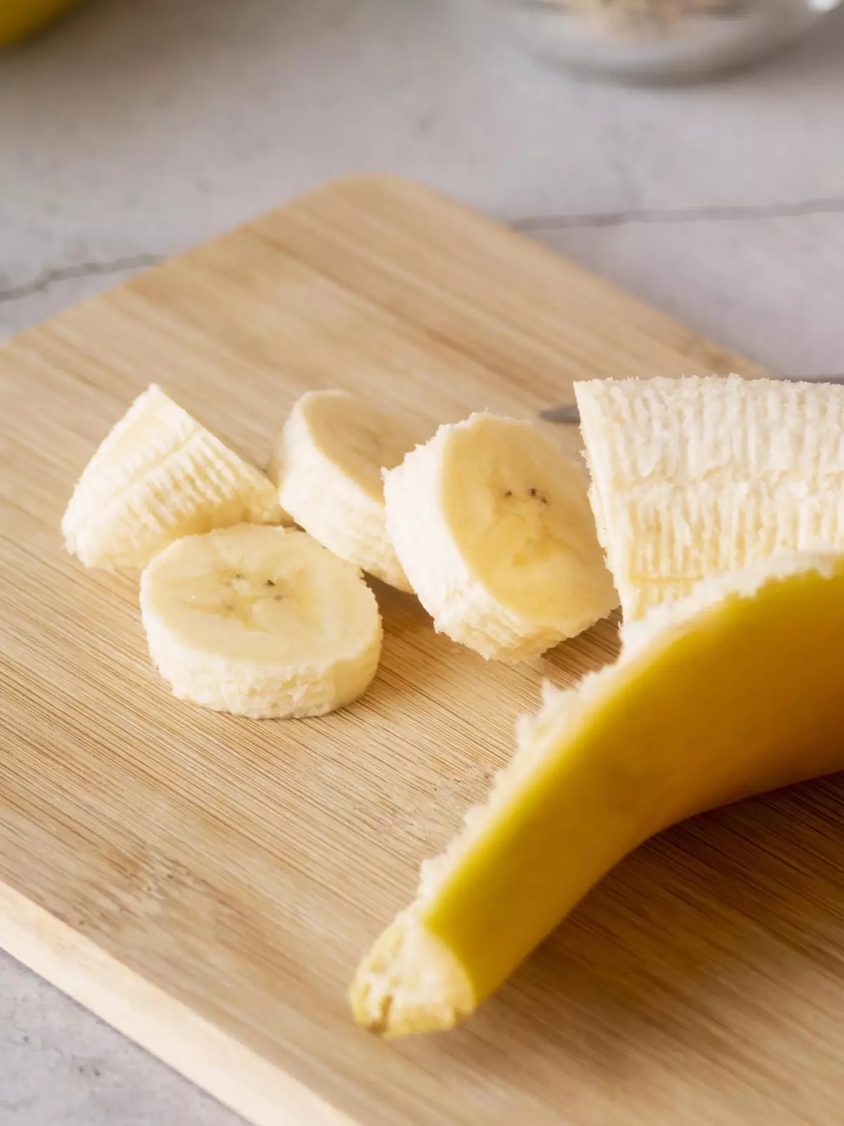 Descasque as bananas e corte em rodelas não muito finas. Leve a um bowl, adicione o óleo de coco, o açúcar, o cravo e a canela. Misture bem. Acomode o wrap em uma assadeira, adicione a geleia e espalhe bem por todo o wrap. Disponha as fatias de banana de forma que cubra todo o fundo. Leve ao forno pré aquecido a 180 graus e asse por 10 minutos. Finalize com as uvas passas e castanhas e um fiozinho de mel ou agave.