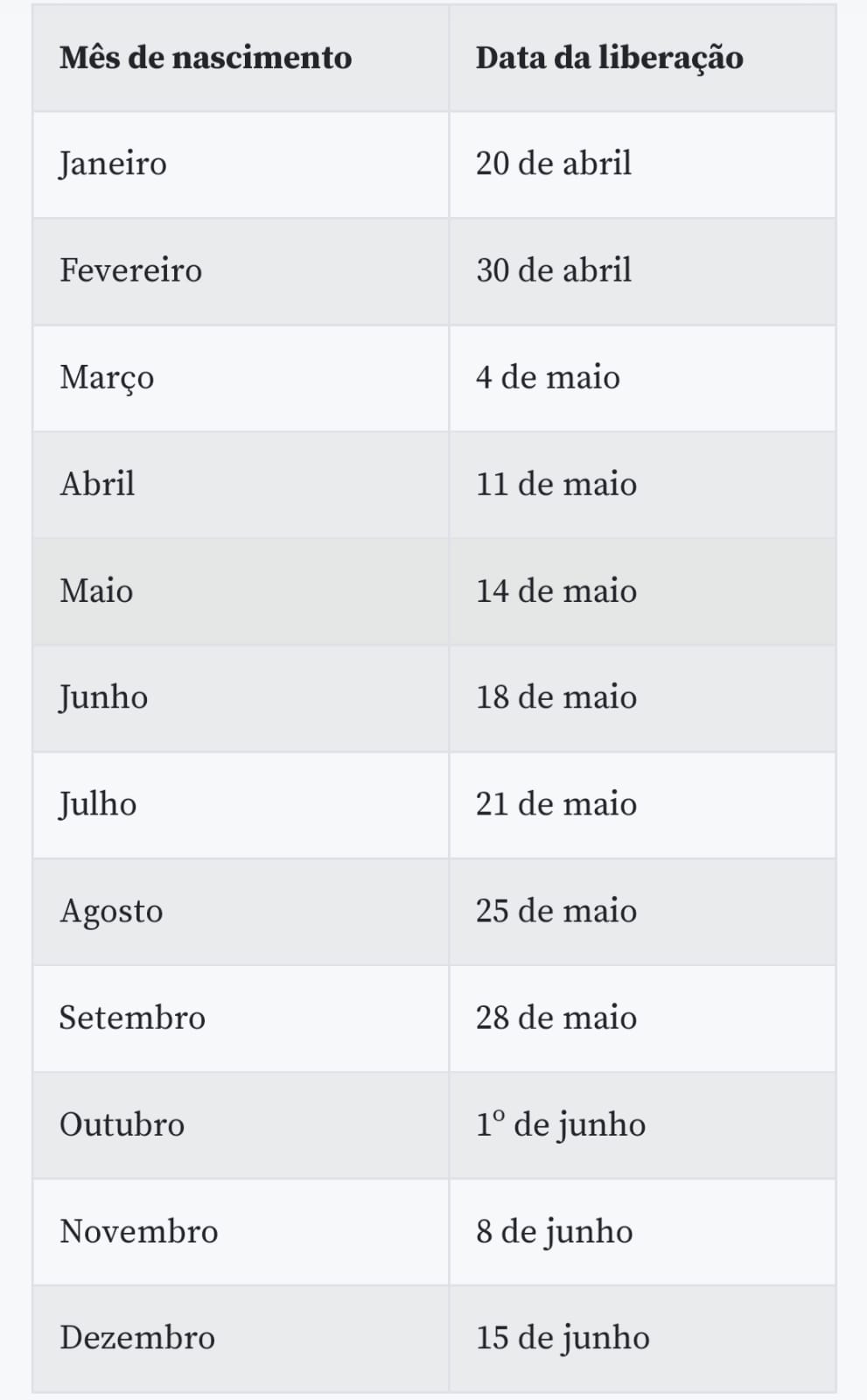 Assim como nas últimas rodadas, o calendário de pagamento foi definido com base no mês de nascimento do trabalhador. A partir da data da liberação na conta poupança digital, os recursos poderão ser retirados até 15 de dezembro.