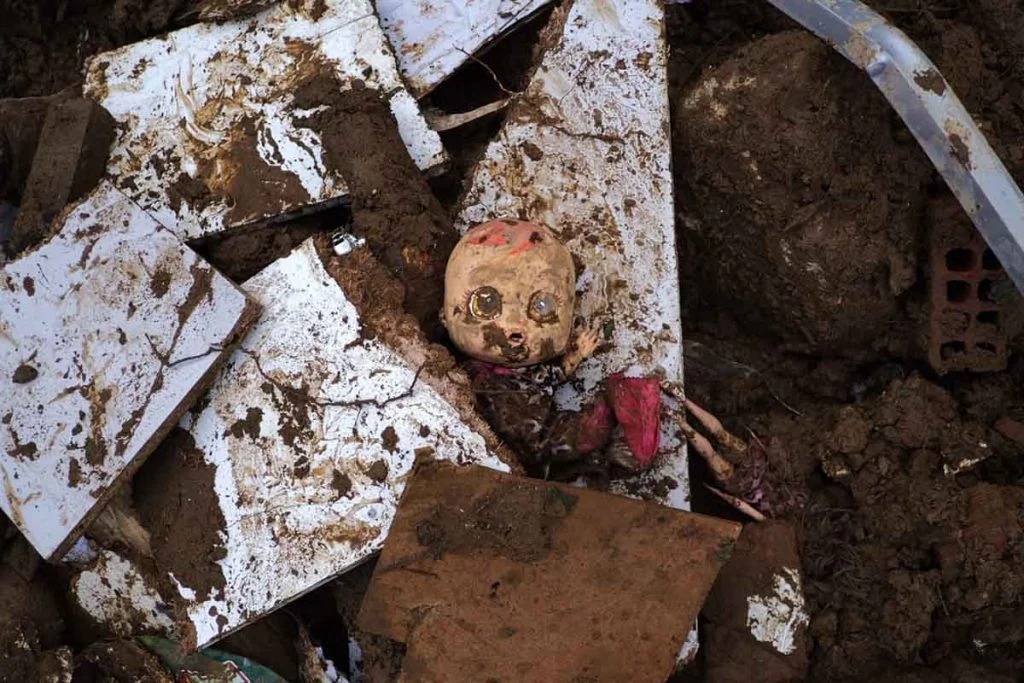 Dezenas de casas foram soterradas. Um bar, cheio de clientes, desapareceu sob a massa de destroços. O mesmo aconteceu com outros endereços do modesto comércio existente por ali.