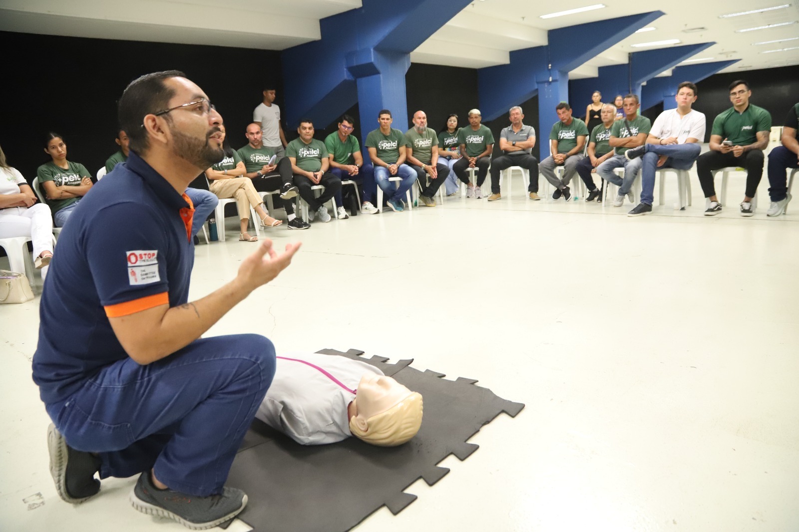 O treinamento foi dividido em quatro dias, com aulas teóricas e práticas. O início foi na terça-feira,04/06, e segue até a sexta-feira, 07/06, abordando como reconhecer, avaliar e intervir em casos de parada cardiorrespiratória, acionamento do sistema de emergência, além da orientação com o uso do desfibrilador externo automático.