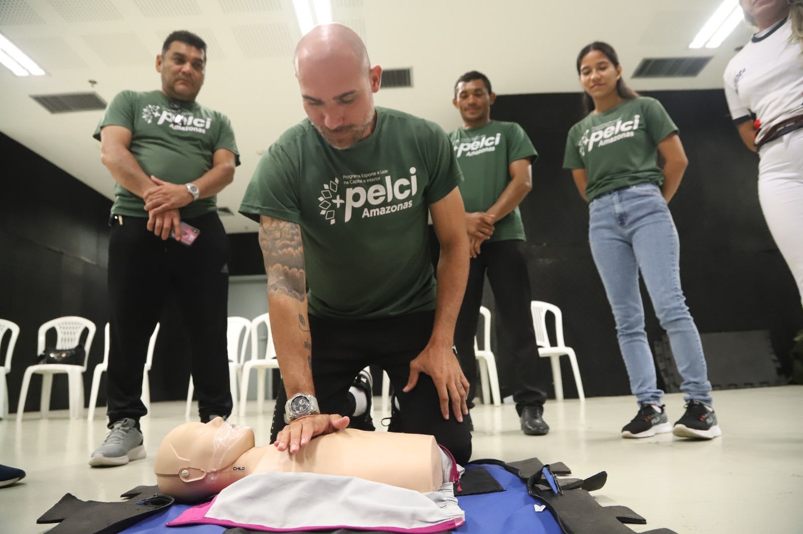 “Essa iniciativa do Governo do Amazonas, em promover esse treinamento para os colaboradores do Pelci e RespirAR, é primordial para nos deixar atentos a qualquer situação. Para dar o primeiro suporte e amparo, podendo até salvar vidas”, disse o monitor do núcleo do Pelci, no Estádio Ismael Benigno, Fábio Gomes.