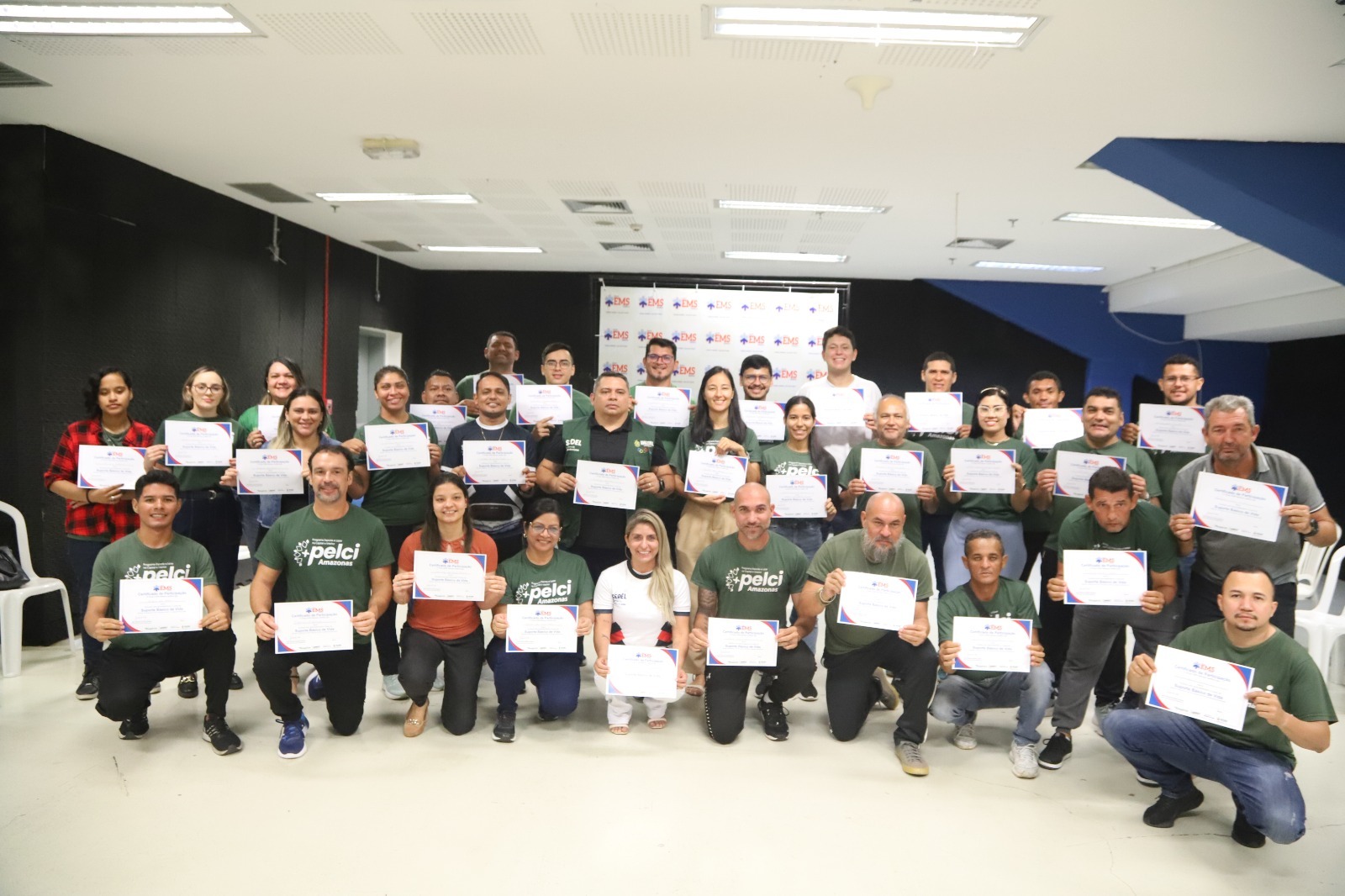 Realizado na Sala de Mídia da Arena da Amazônia, ao final da capacitação, todos os participantes recebem um certificado de conclusão.
