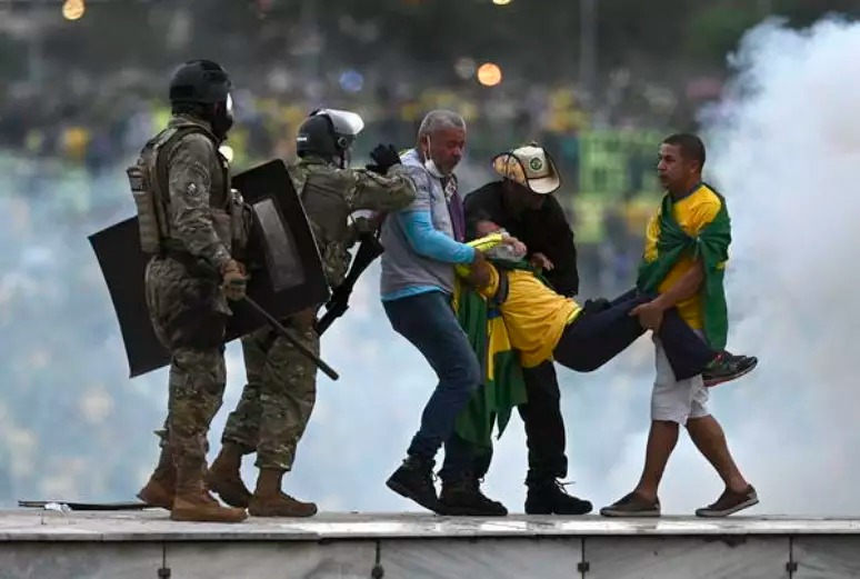A invasão dos prédios públicos no dia 8 de janeiro começou por volta das 15h. Após romperem o cordão de isolamento com poucos policiais militares, os golpistas se dirigiram ao Congresso Nacional e invadiram a sede do Legislativo.Em seguida, outro grupo se dirigiu ao edifício-sede do STF e também não foi contido pelos agentes da Polícia Judiciária, que fazia a proteção das instalações da Corte.