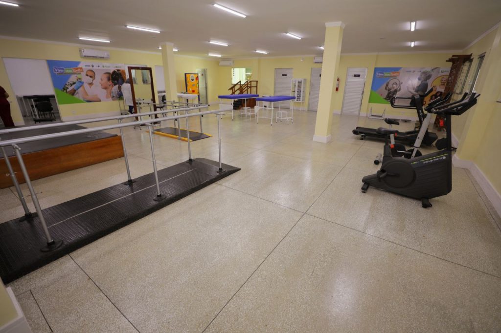 O setor conta com espelhos que facilitam as terapias individuais e em grupo, bem como está adaptado para receber as pessoas com deficiência contando com piso tátil e espaço adequado para cadeirantes