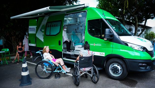 A unidade odontológica móvel foi entregue pelo prefeito David Almeida, ao lado da secretária municipal de Saúde, Shádia Fraxe, no dia 13/1, com o objetivo de fortalecer a saúde bucal no município. Os residentes e servidores da Fundação Dr. Thomas foram os primeiros a receber os atendimentos da estrutura. A unidade oferta todos os procedimentos de saúde bucal da Atenção Primária, entre eles exame clínico, curativo, restauração, extração, entre outros. A estrutura dispõe de equipe profissional, insumos e equipamentos, além de gerador de energia e reservatório de água, para autonomia de funcionamento. O equipamento itinerante oferta atendimentos de forma prioritária para usuários e populações em vulnerabilidade social, inclusive idosos com dificuldade de locomoção, pessoas em situação de rua e Pessoas com Deficiência (PcDs).