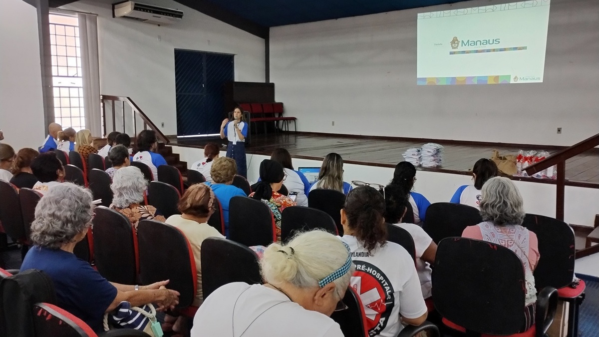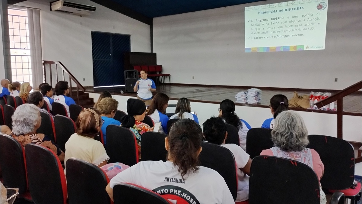 Usuários e comunitários hipertensos e diabéticos frequentadores do Parque Municipal do Idoso, na Zona Centro-Sul, participaram de um curso de autocuidado promovido pela Prefeitura de Manaus, na manhã de quarta-feira, 23/4, com enfoque na prevenção e controle da hipertensão arterial. Aproximadamente 50 usuários participaram da atividade, realizada pela Secretaria Municipal de Saúde (Semsa), em parceria com a Sociedade Brasileira de Cardiologia do Estado do Amazonas (SBC/AM).
