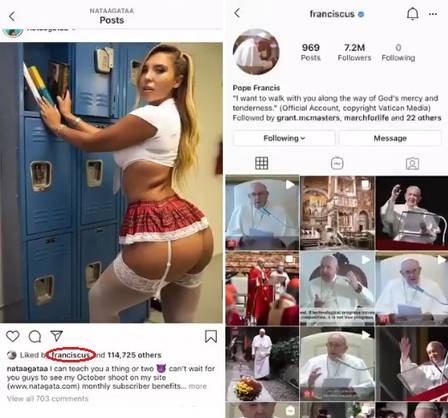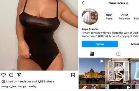 A brasileira não foi a única curtida pela conta de Francisco. A conta do Papa no Instagram foi flagrada também dando um "like" em outra foto de conteúdo sensual. Desta vez, a também modelo Margot Foxx.