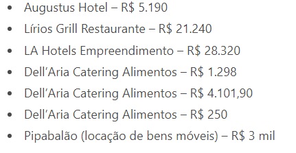 Confira a lista de gastos da dupla no dia 30 de agosto de 2021 em Goiânia: