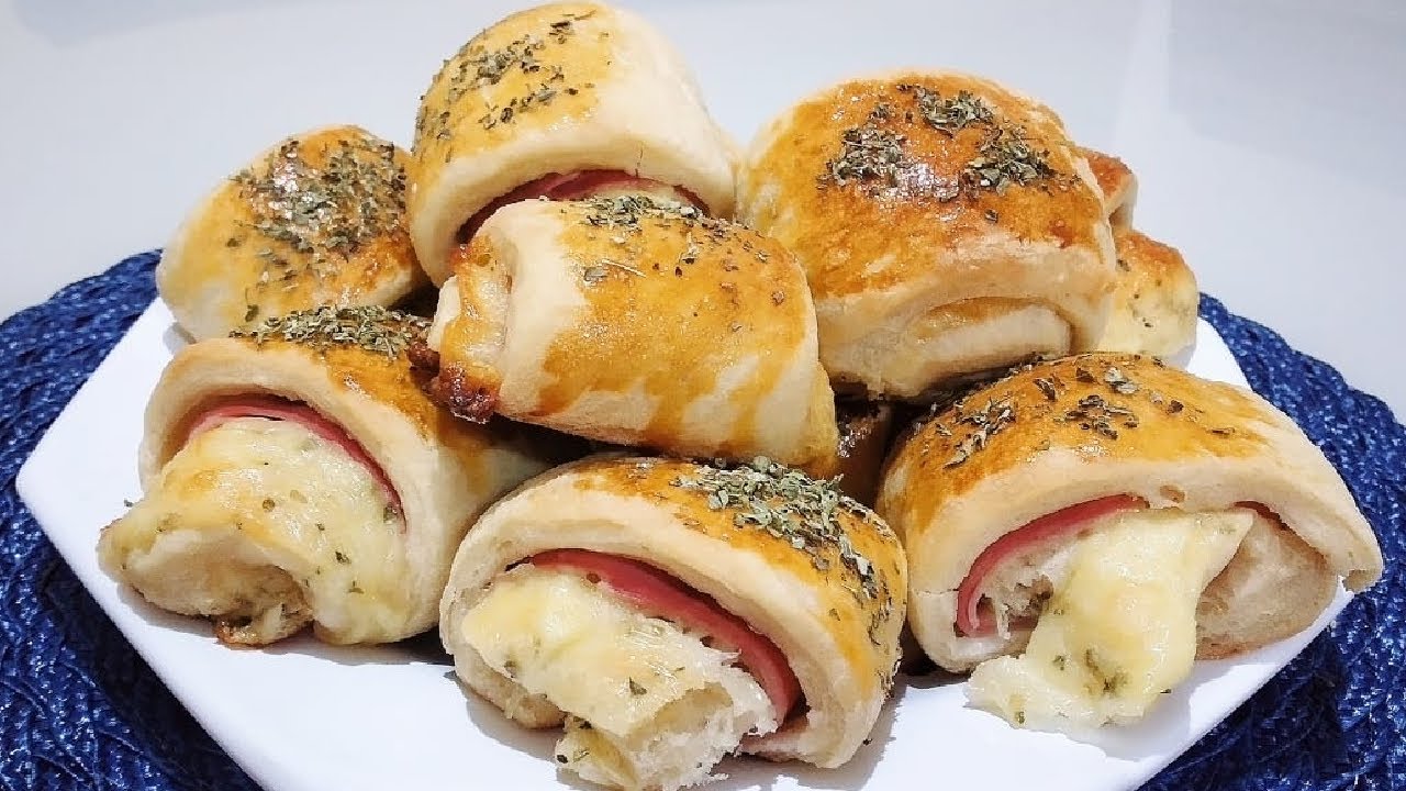 Modo de preparo do enroladinho de presunto e queijo: