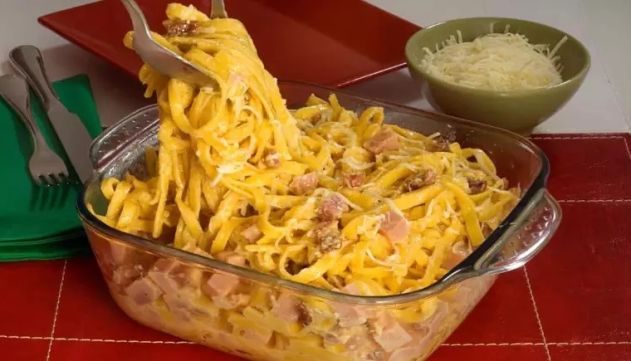 Talharim ao molho carbonara de 10 minutos com ingredientes simples