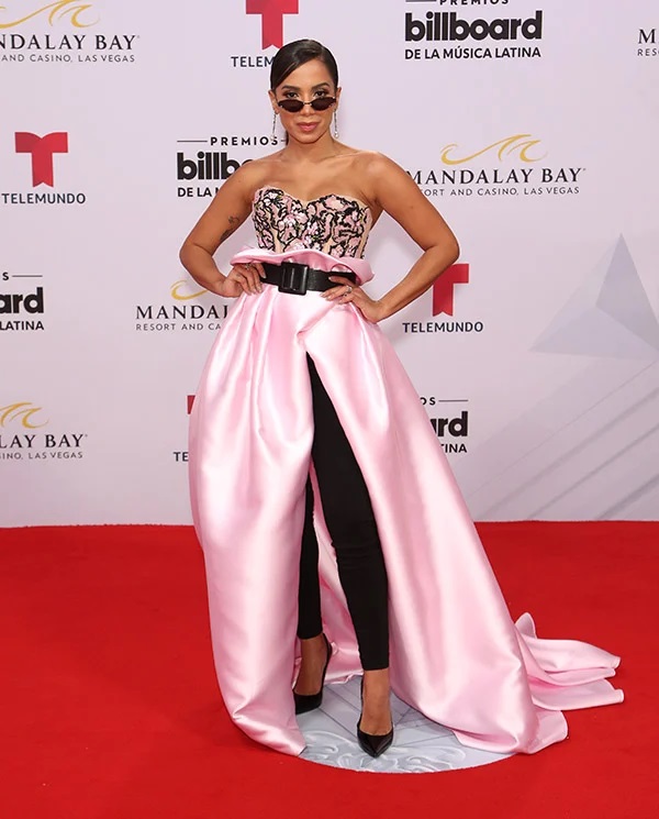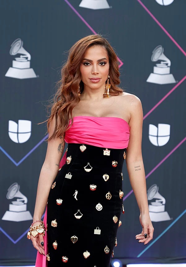 No Grammy Latino de 2021, Anitta elegeu um vestido preto da Moschino elegante com top rosa