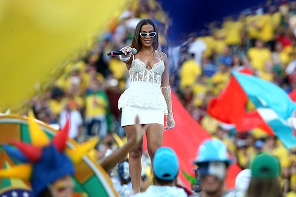 Para a apresentação de encerramento da Copa América de 2019, a carioca escolheu uma produção onde o corset de renda branca era o protagonista