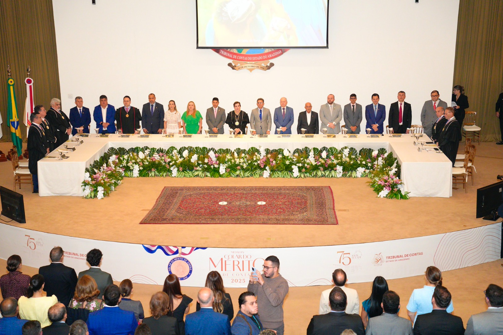 A solenidade de outorga ocorreu no auditório do TCE-AM, reunindo conselheiros, servidores, autoridades e os demais homenageados.