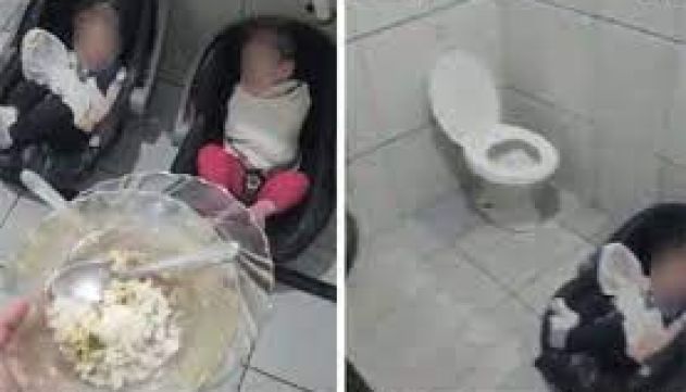 Nas cenas, é possível ver que os bebês estão em um banheiro, próximo a uma privada e chorando enquanto a pessoa que filma está comendo.
