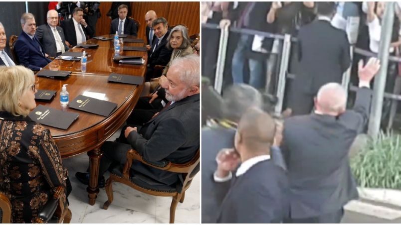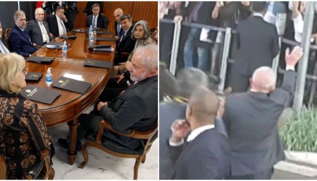 Vídeos que circulam nas redes sociais mostram Lula sendo cumprimentado pelos ministros do STF e também sendo ovacionado por apoiadores ao deixar o local da reunião.