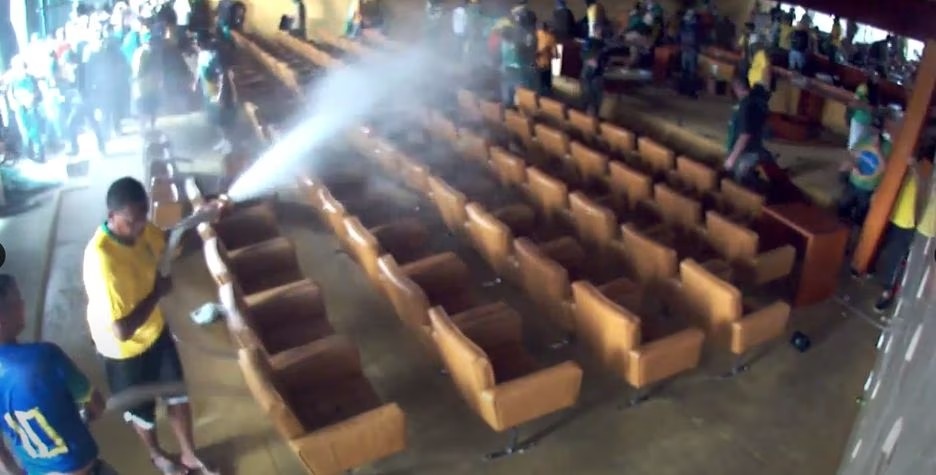 Golpistas depredam plenário do STF usando até mangueira de incêndio.