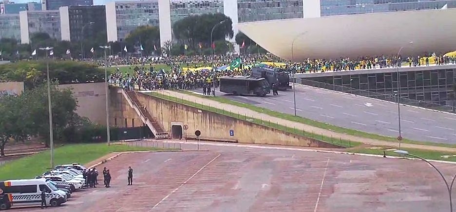 Sem o poderio ostensivo e a barreira física criada pelas viaturas, os bolsonaristas conseguiram romper com facilidade o cerco policial e acessar a Praça dos Três Poderes rumo ao STF. O Centurion, que ainda estava no local, não chegou a ser usado para dificultar a locomoção dos extremistas.