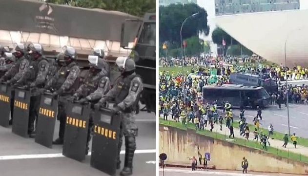 Vídeos captados pelas câmeras externas do Supremo Tribunal Federal (STF) flagraram o momento em que a Tropa de Choque da Polícia Militar do Distrito Federal (PMDF) desmontou um bloqueio tático posicionado próximo ao Congresso Nacional, no último dia 8, que servia para impedir a invasão dos golpistas aos demais prédios públicos localizados na praça dos Três Poderes. As imagens acessadas pelo Estadão mostram que o recuo dos agentes da PM facilitou o acesso dos extremistas ao edifício sede da Suprema Corte.